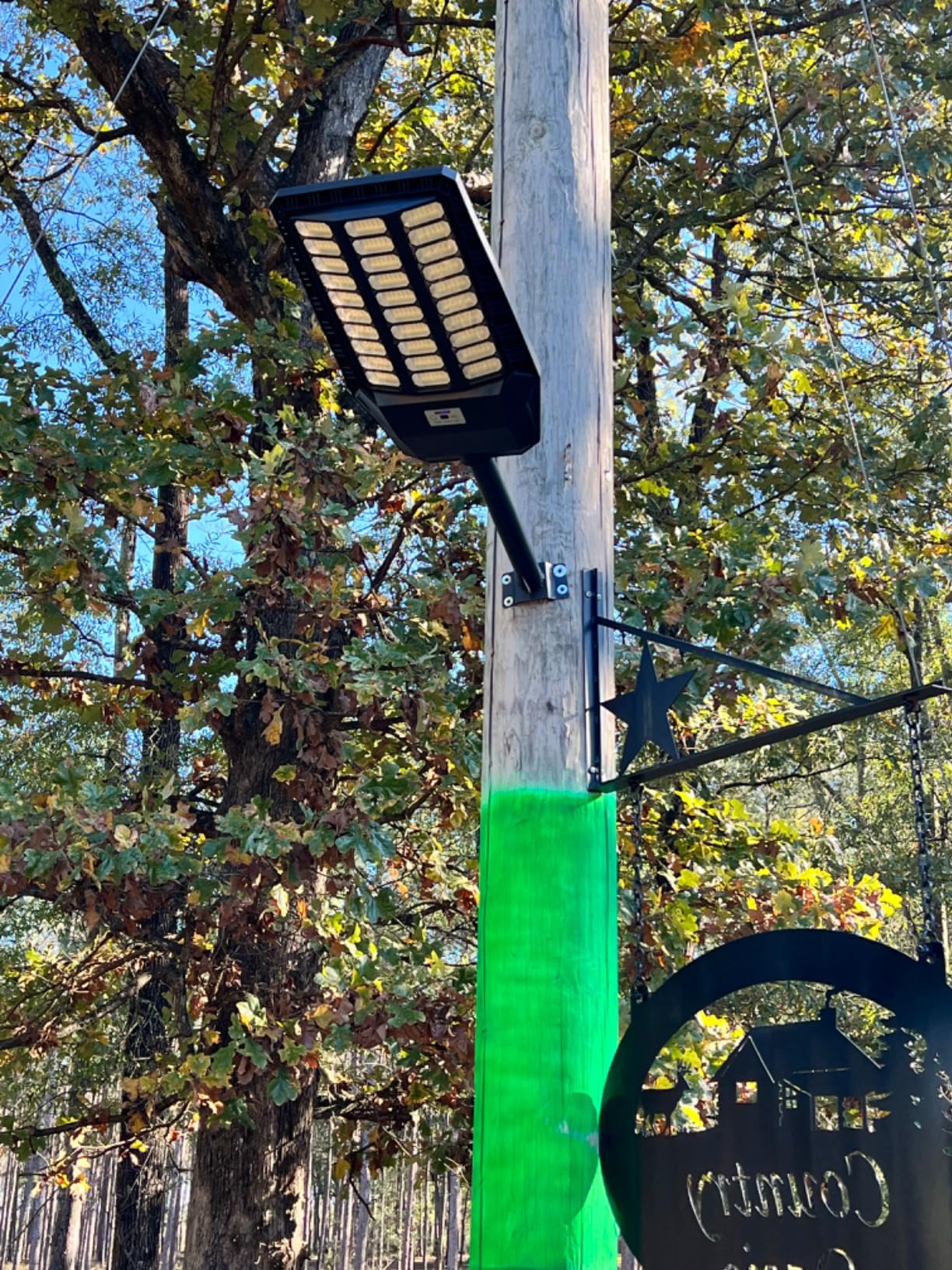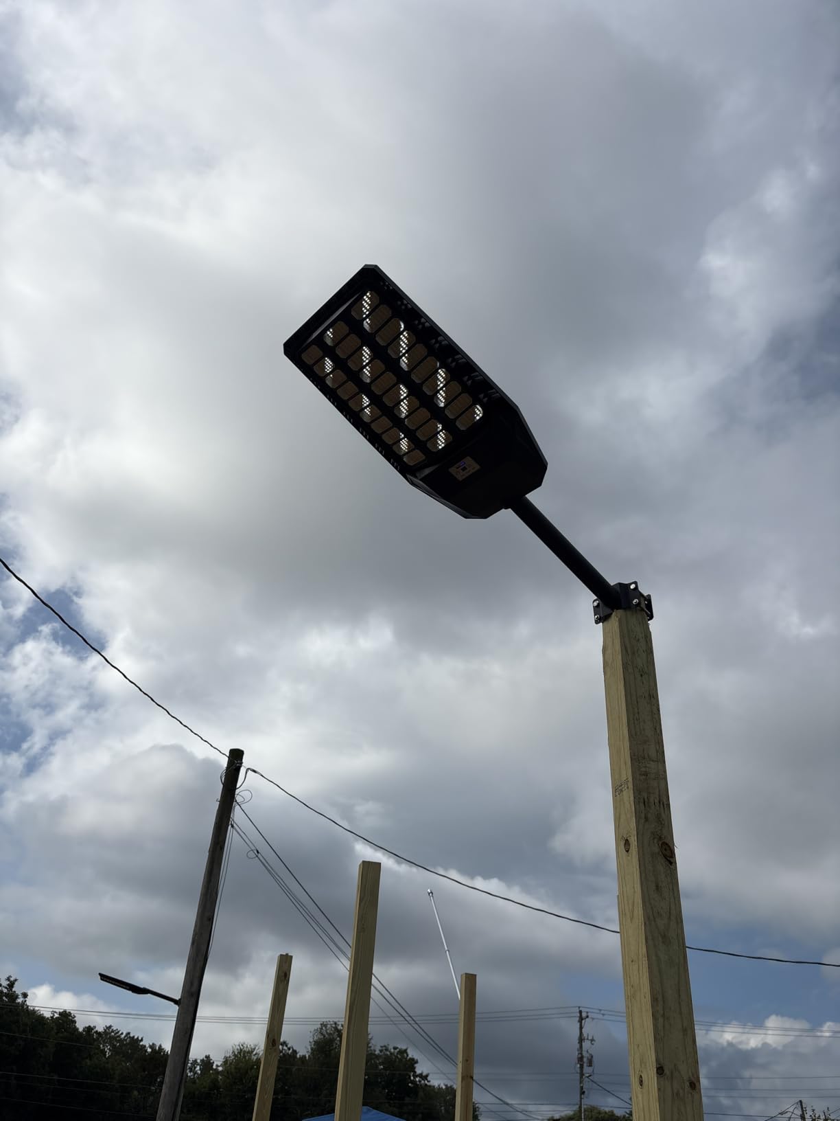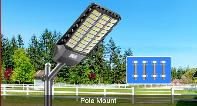 pole, tree, balcony or anywhere outdoors. The suitable diameter of lighting pole is 1.5 IN~4 IN. No wiring is required and is suitable for parking lots, streets, lawns.