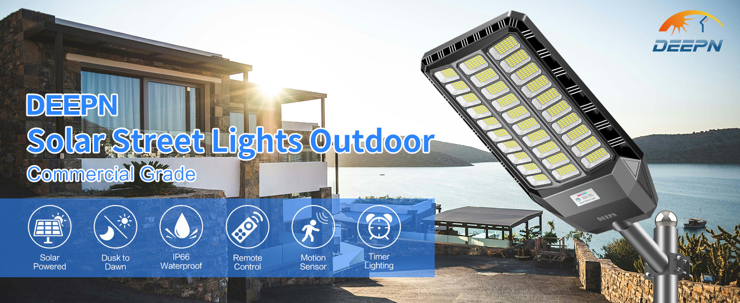 Deepn Solar Street Light 8700W, Solar Parking Lot Lights Waterproof 6500K, Solar Lights Outdoor Motion Sensor Dusk to Dawn for Parking Lot