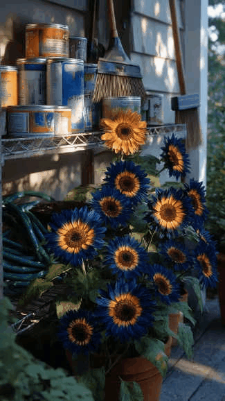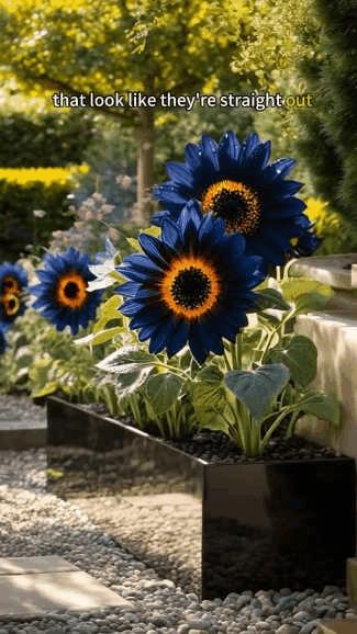 Turn your garden into a nighttime spectacle with the rare and mesmerizingMidnight Blaze Sunflowers. Withdeep navy-blue petals kissed by glowing orange and gold centers, this sunflower looks like it's been lit from within — a living flame under the stars. ✨