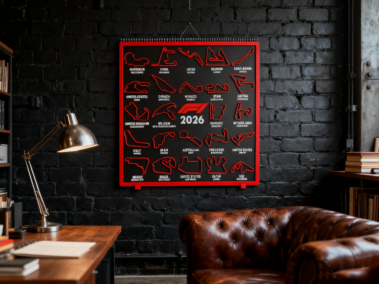 - Whether gracing the shelves of a home office,adding flair to a dedicated "man cave," or bringing a touch of Fl magic to a bedroom,the 2026 F1 Calendar effortlessly elevates the aesthetic of any environment.