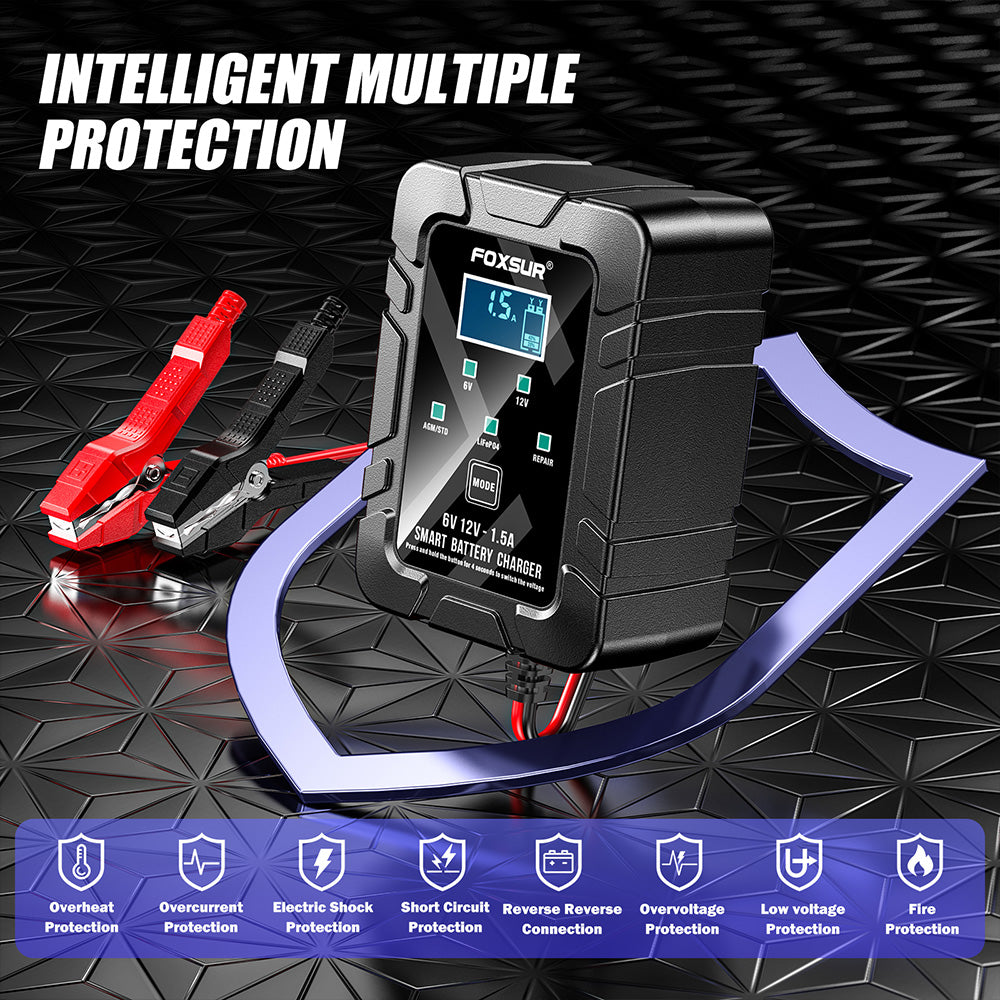 This battery charger uses the latest technologies, including lead-acid, AGM, gel, immersion (wet), calcium deep cycle, VRLA maintenance-free lead-acid, LiFePo4, battery charging, and can be used with 4Ah-30Ah batteries.