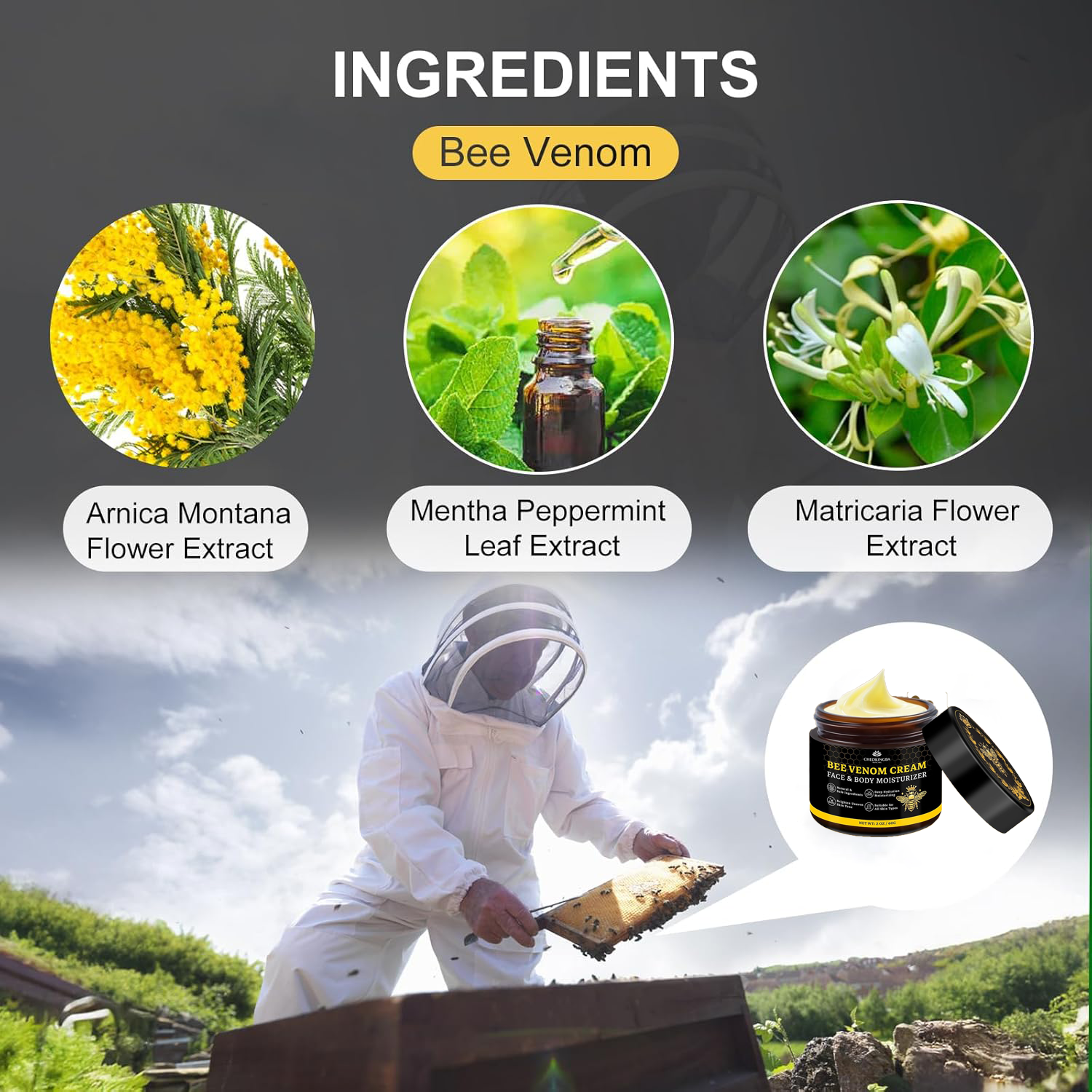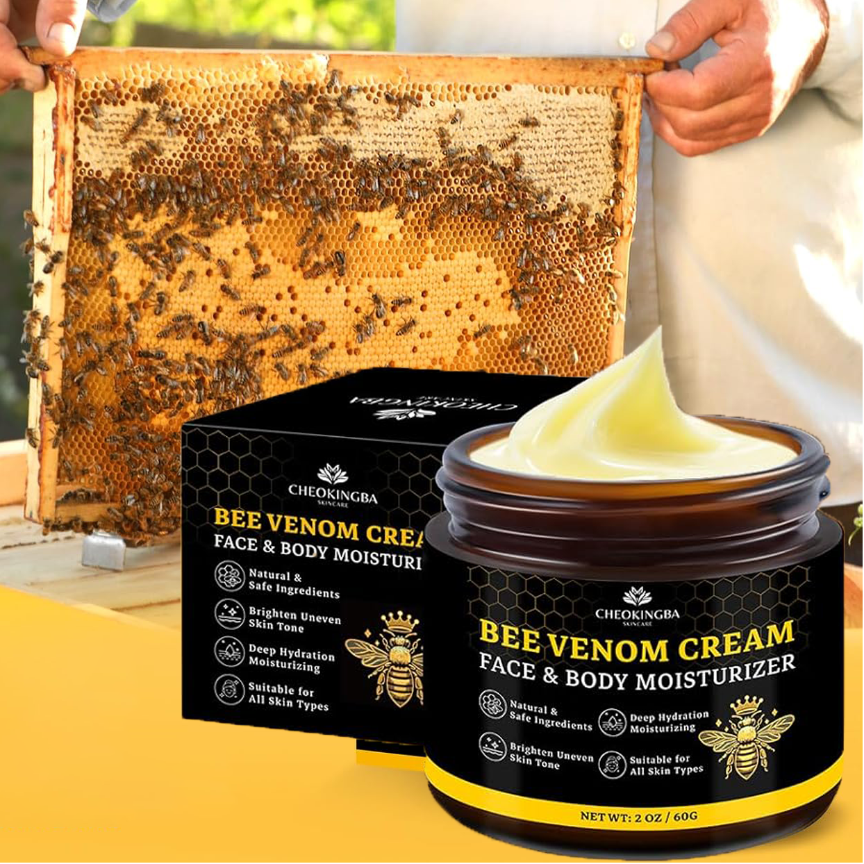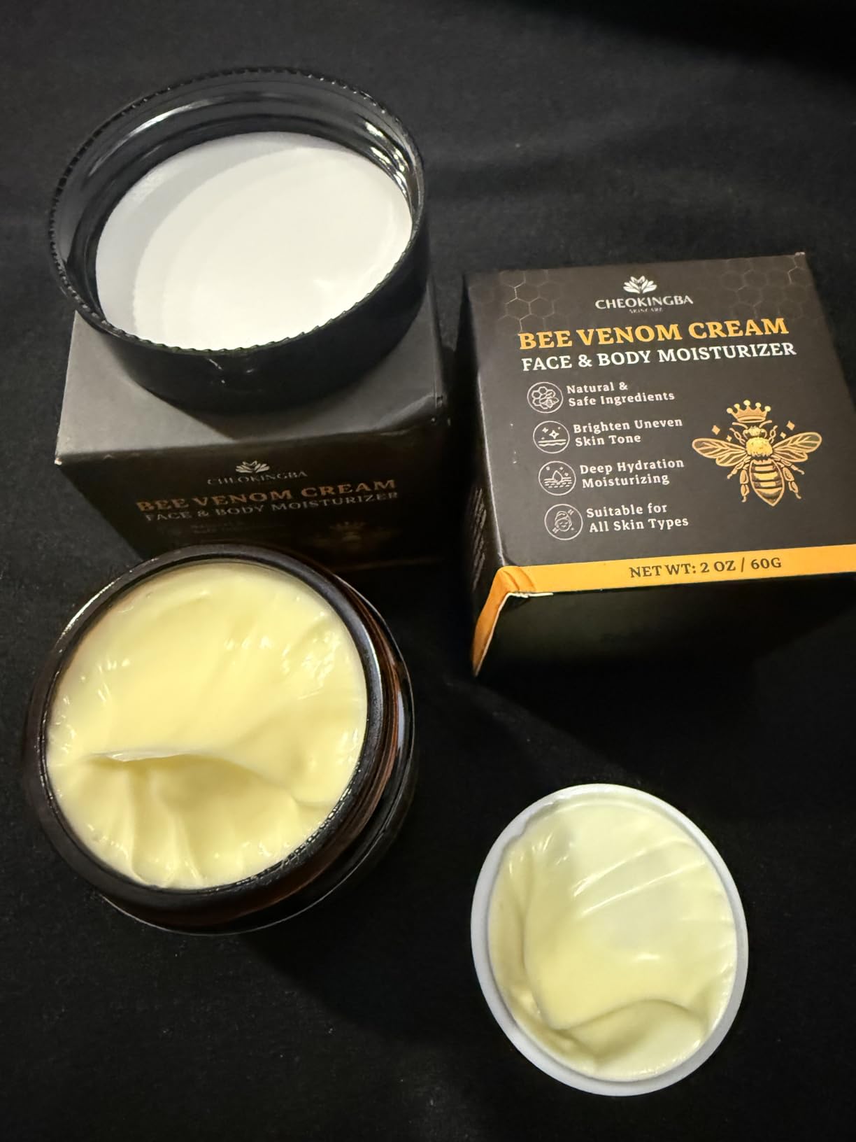 The Bee Venom Cream & body face and moisturizer works wonderful. I put some on my hands and arms and my skin no longer can see the crepey skin. It is soft and smooth. I highly recommend this and will be purchasing again.