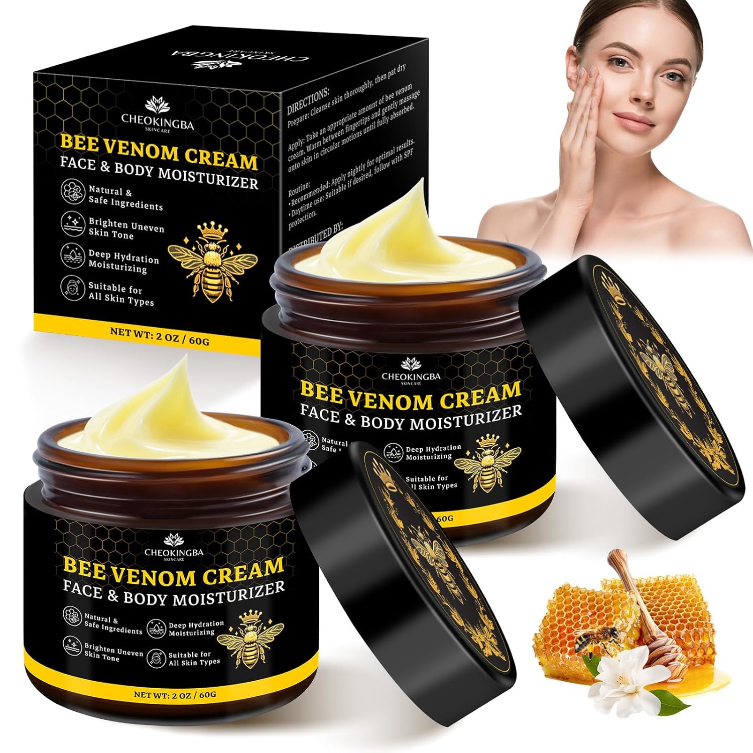 Infused with bee venom, salicylic acid, and plant extracts (tea tree oil, arborvitae, borneol), this cream gently improves skin texture, balances moisture, and supports a smoother appearance. The nourishing blend helps with natural skin renewal, creating a refreshed look.