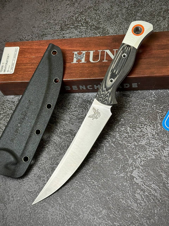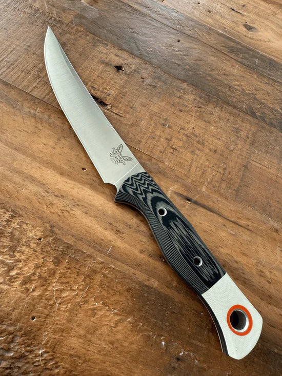Transform your hunting or expedition camp into a fully functional outdoor kitchen with the new Meatcrafter® 15500-1. Designed for precision and performance, this knife features a black and white textured G10 handle and a sleek black Boltaron® sheath. The high-quality CPM-S45VN steel blade, enhanced with our proven SelectEdge® technology, delivers exceptional sharpness and optimal control. Whether you're dressing, deboning, or carving your game, the Meatcrafter® helps you achieve professional-level results wherever your adventures take you.