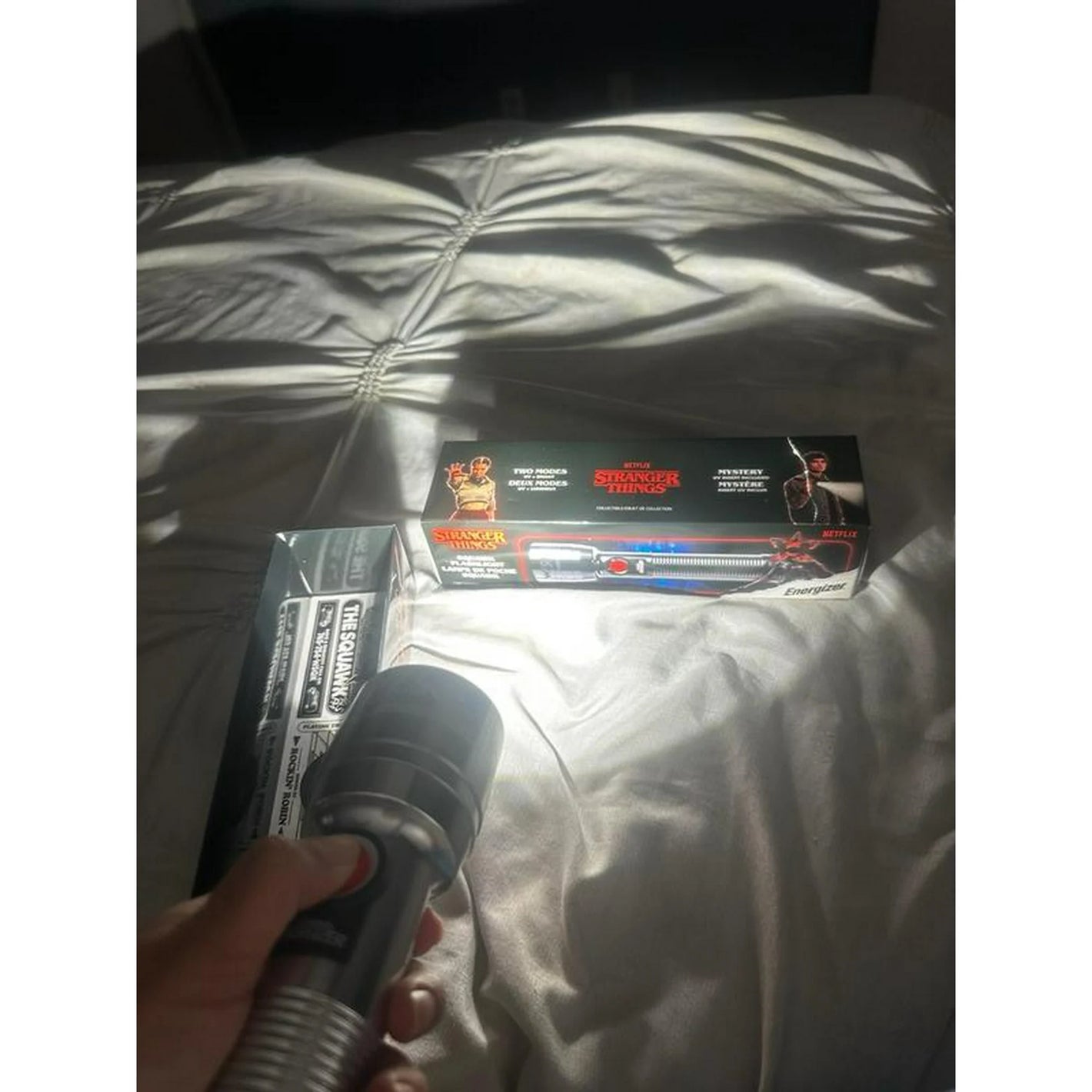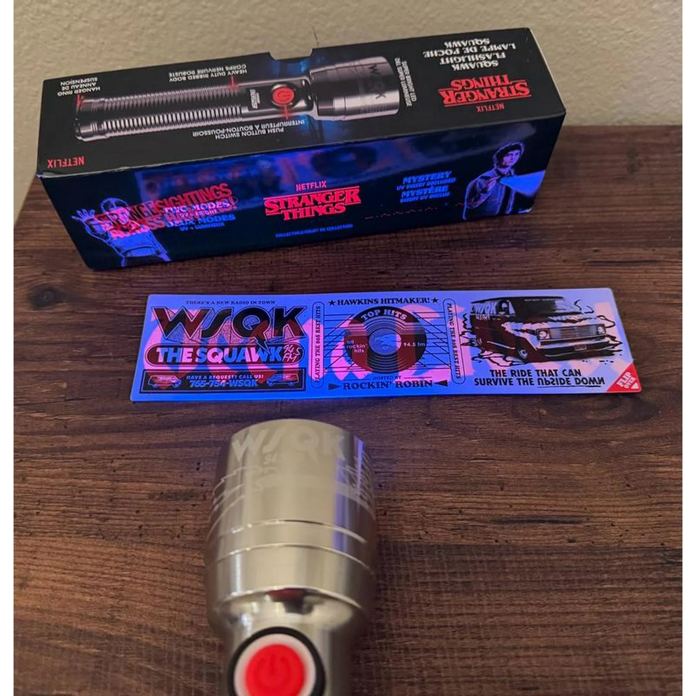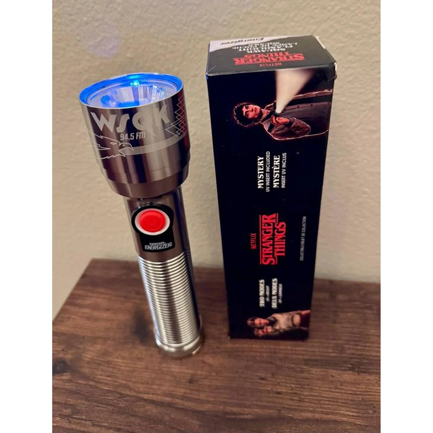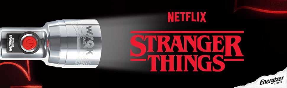 One Energizer Stranger Things Squawk Retro LED Flashlight with UV and bright modes, as seen in Season 5 of Stranger Things on Netflix Retro 1980s Design.