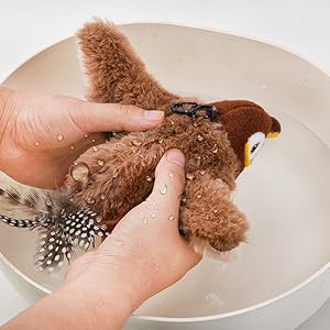 While designed for cats, many customers have shared that their small dogsenjoy playing with the toy as well. The soft plush material is bite-resistant and durable enough for gentle dog play too. The removable fabric can be easily hand-washed with water and soap. See allFlying Bird™ Interactive Cat Toyshere.