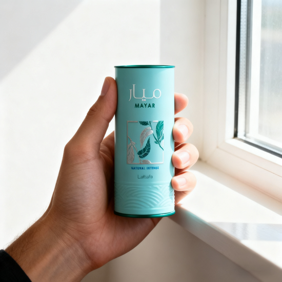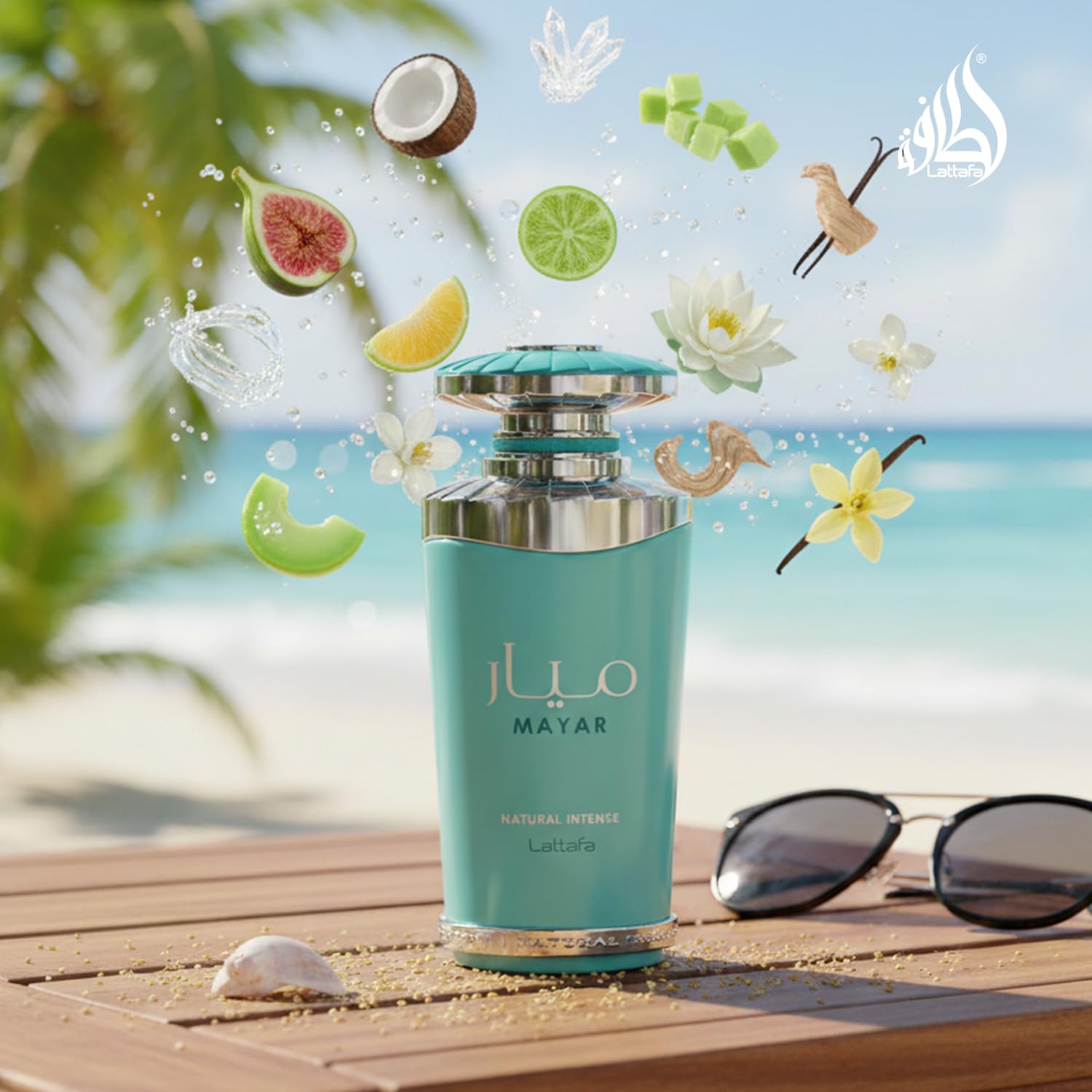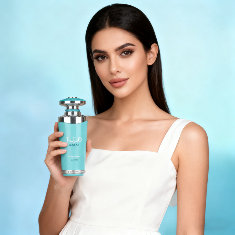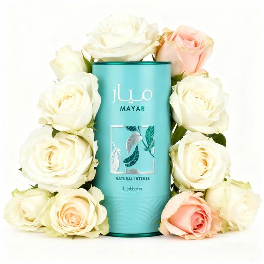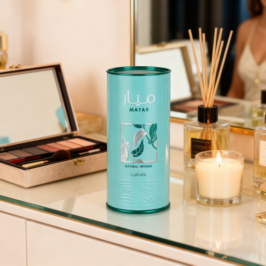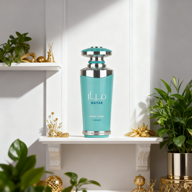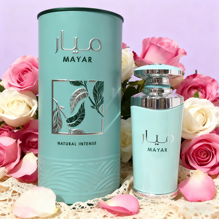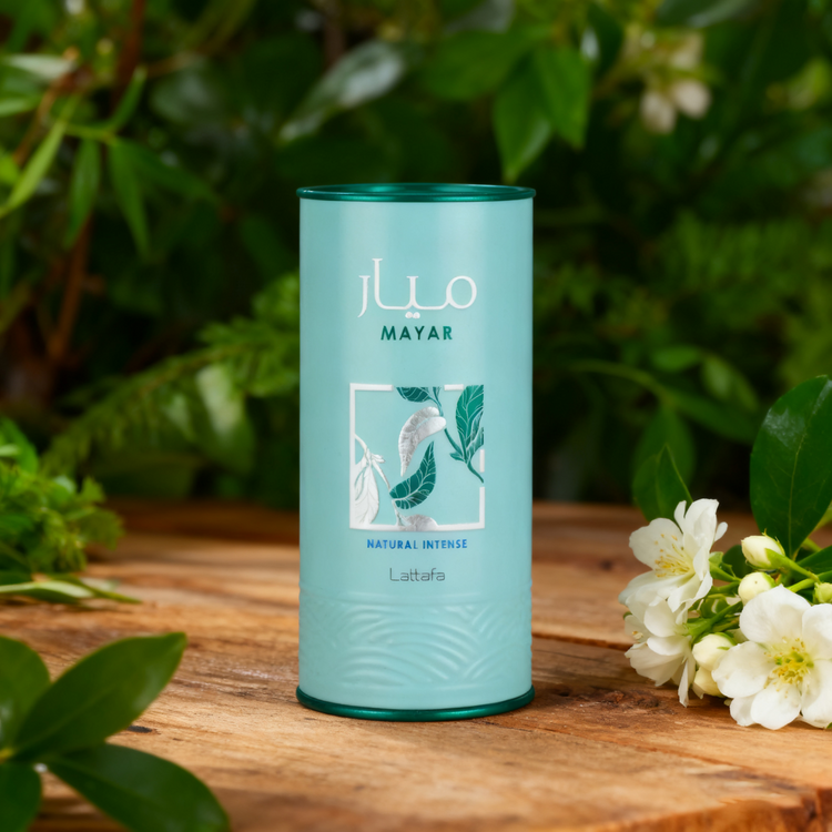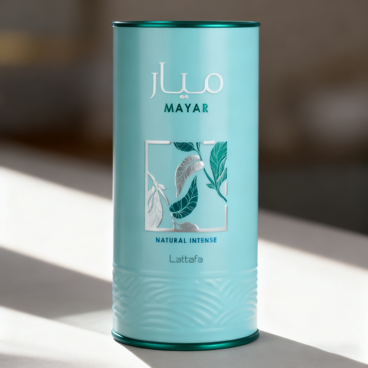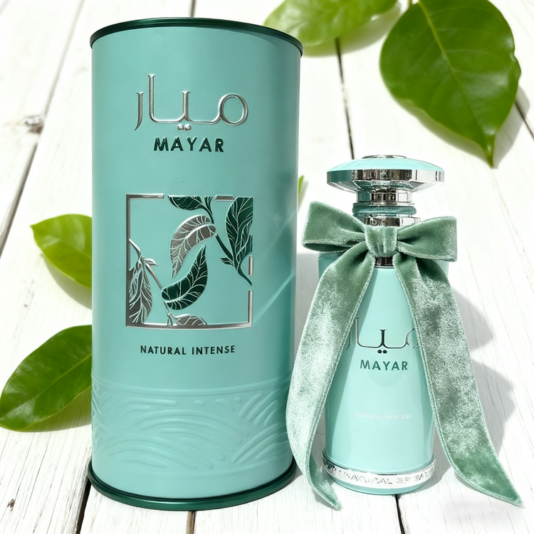 Housed in a sleek, mint-hued bottle with polished silver accents, Mayar Natural Intense is as much a statement piece as it is a fragrance. The elegant packaging (complete with an embossed, nature-inspired case) makes it a perfect gift or a lavish addition to your vanity.