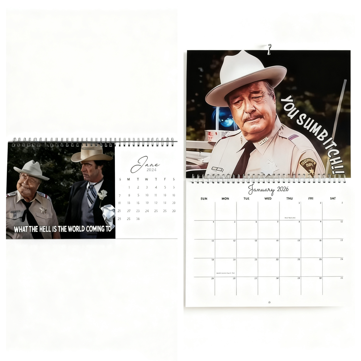 Each month brings a new moment of classic movie humor, turning your wall into a tribute to one of cinema’s most unforgettable sheriffs. From his fiery expressions to those legendary one-liners, this calendar is more than just a planner — it’s your daily dose of laughter, nostalgia, and Southern charm.