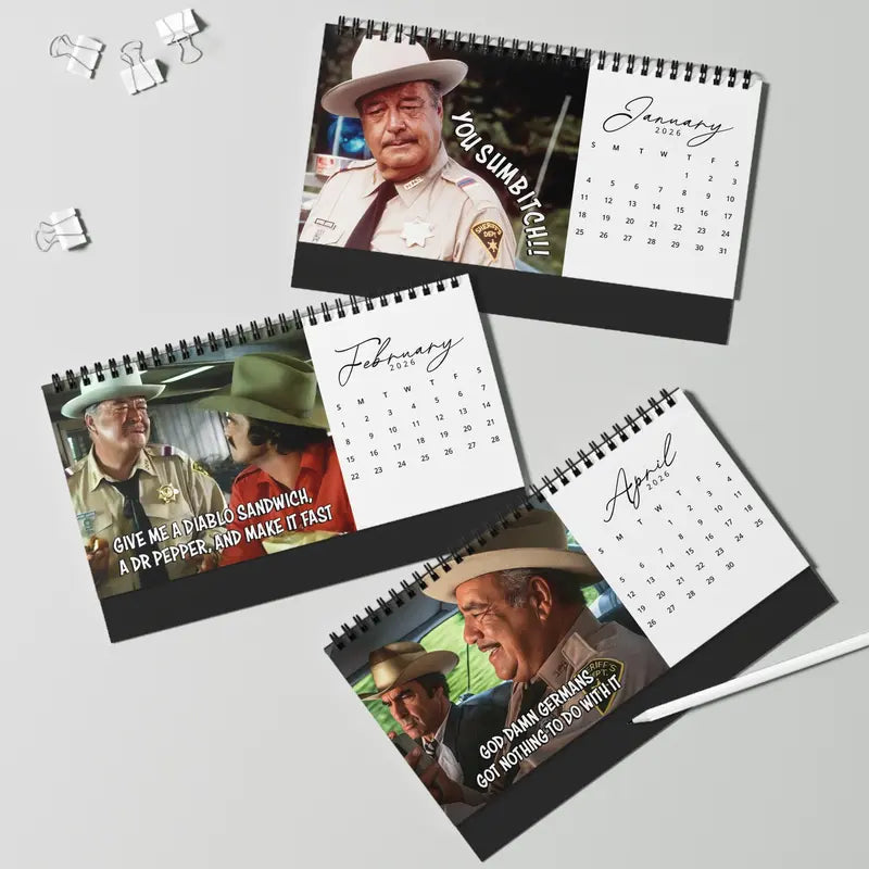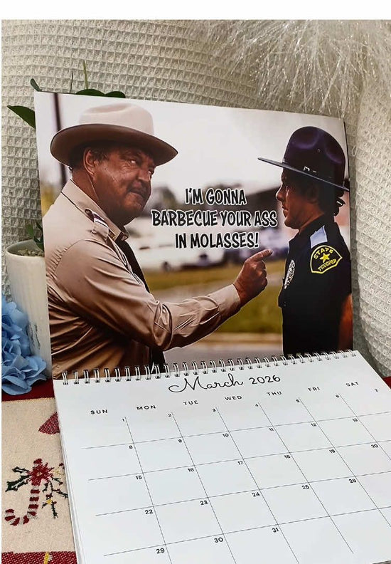 Looking for a fun and unique gift this holiday season? The 2026 Sheriff Buford calendar is perfect for fans of Smokey and the Bandit or anyone who loves retro movie nostalgia. With its witty quotes, cinematic artwork, and practical monthly layouts, it’s a gift that’s both entertaining and useful — guaranteed to bring a smile under the Christmas tree.