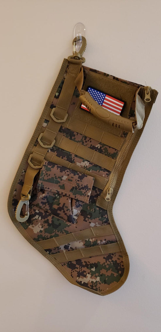 The Tactical Christmas Stocking features a versatile design that allows for personalization options. Many users opt to attach their own patches or name tags to make it truly unique. This adaptability makes it a great gift option for military personnel or outdoor enthusiasts, as they can add symbols that reflect their interests or branches of service, creating a more personalized holiday experience.