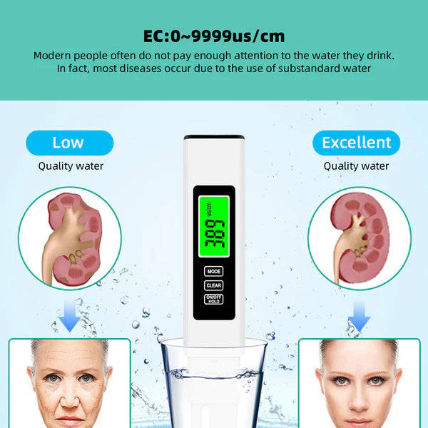 Der Stift nutzt fortschrittliche Technologie zur Messung von TDS, EC und Temperatur und liefert so sofortiges Feedback zur Wasserqualität.