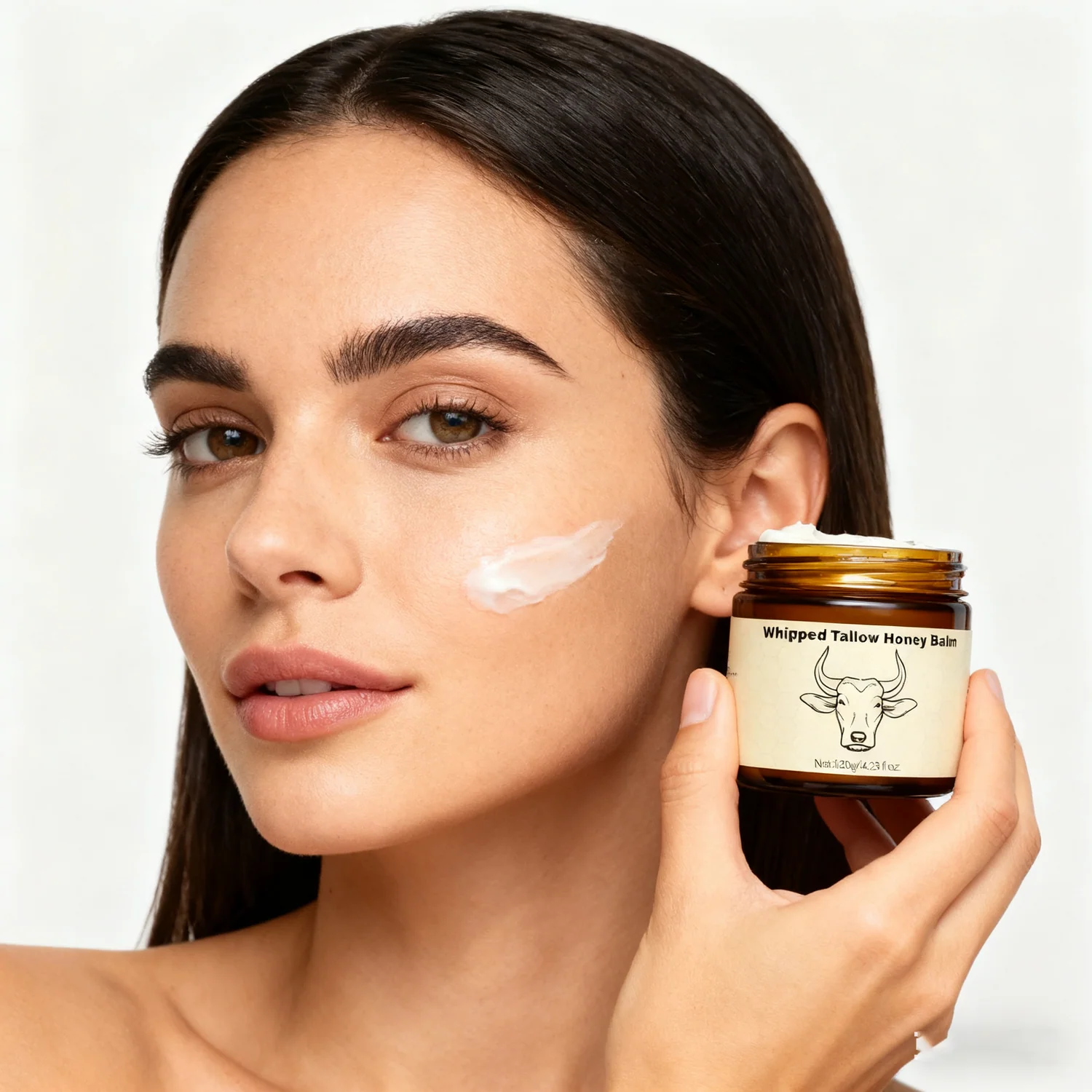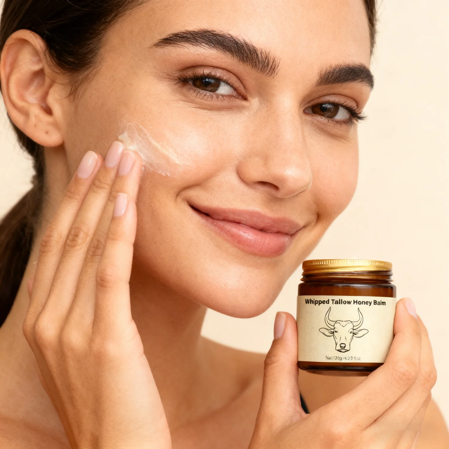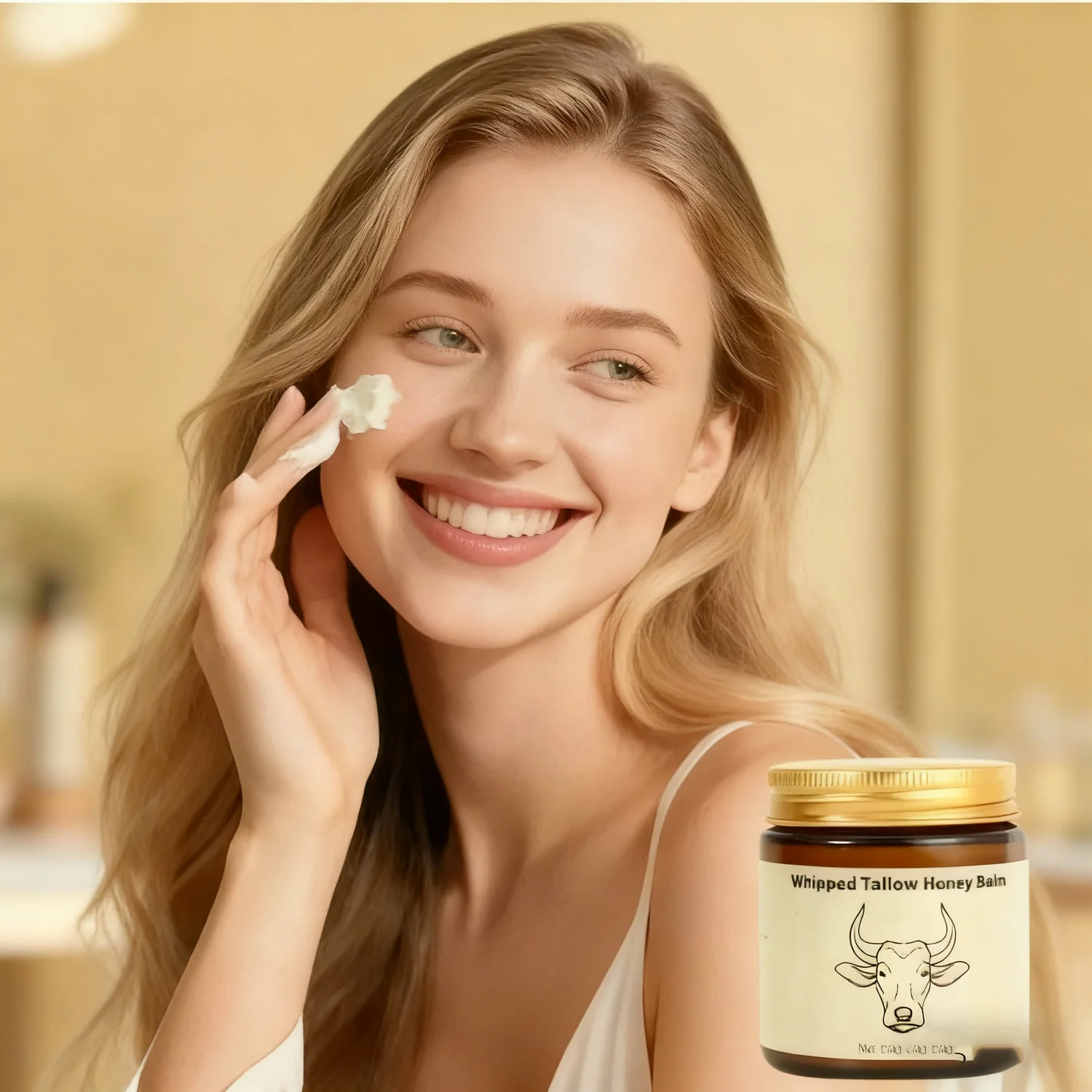 The whipped balm's unique texture melts into skin instantly, forming a protective moisture - sealing layer. This barrier halts water loss around the clock. Combining tallow's occlusive and honey's humectant benefits, it creates a continuous hydration cycle,keeping skin soft and moisturized for hours, unlike short- acting alternatives.